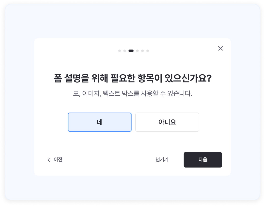 - 로고 삽입,브랜드 컬러 지정 등 커스터마이징 기능을 통해 조직의 아이덴티티에 맞는 폼을 만들 수 있습니다.