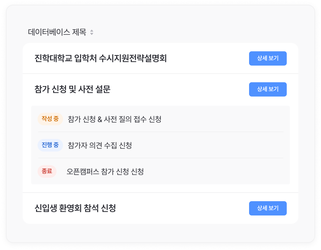 특히 모집, 접수, 설문 등 반복적으로 발생하는 수요를 가진 팀에게 효율적인 정보 수집 및 관리 환경을 제공합니다.