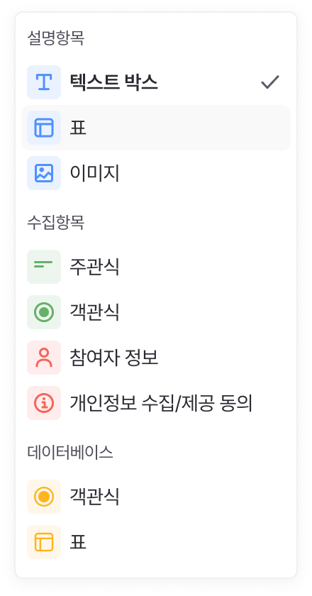 - 설문조사/피드백 폼 (예: 만족도 조사)